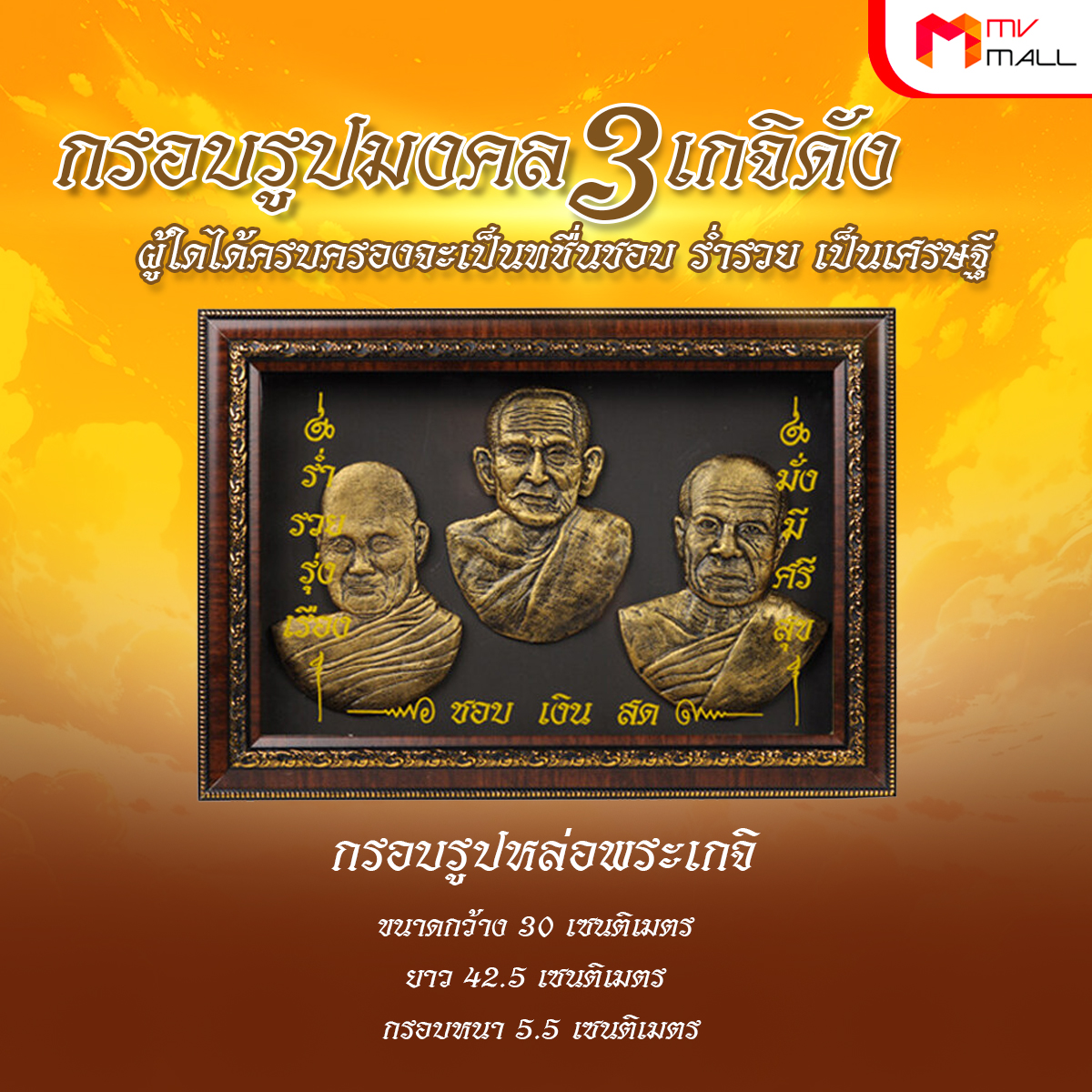 - กรอบรูปหล่อพระเกจิ ขนาดกว้าง 30 เซนติเมตร ยาว 42.5 เซนติเมตร กรอบหนา 5.5 เซนติเมตร