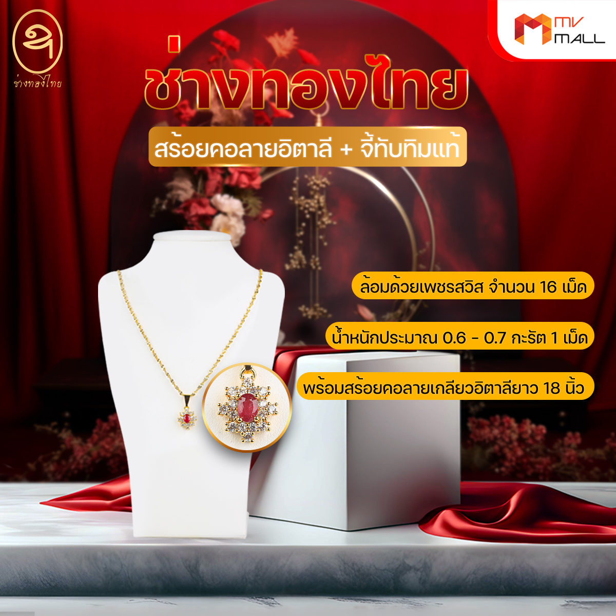 - พร้อมสร้อยคอลายเกลียวอิตาลียาว 18 นิ้ว