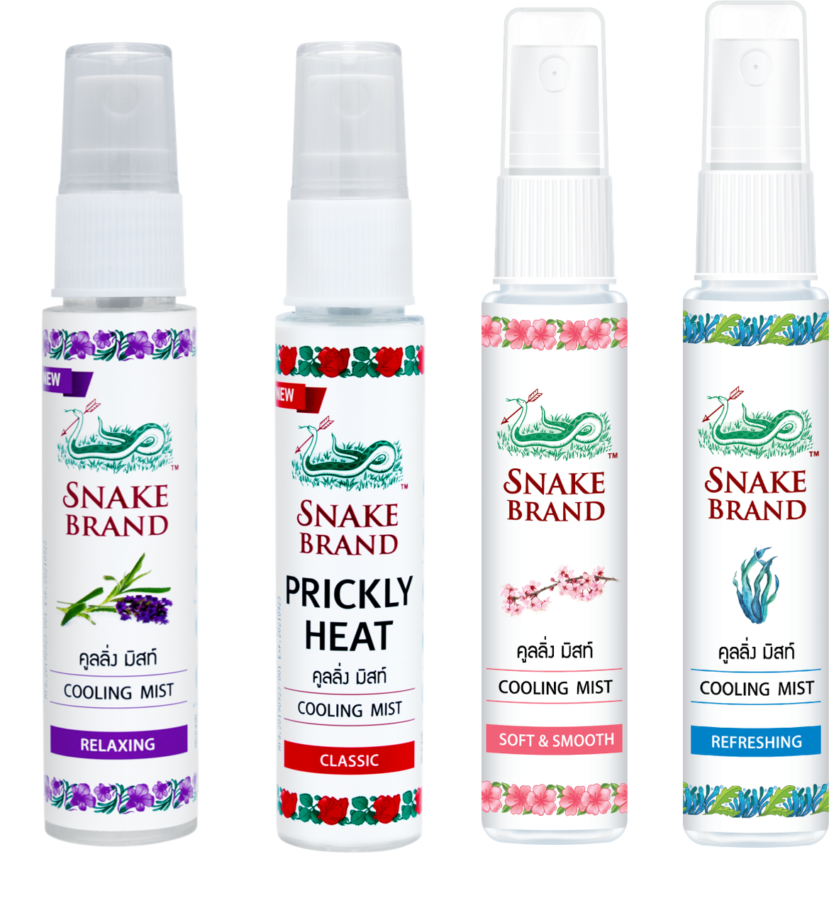 ตรางู Cooling Mist สเปรย์เย็น ขนาดพกพา เย็นทันทีหลังฉีด 4 กลิ่น ขนาด 30 ml. จำนวน 4 ขวด