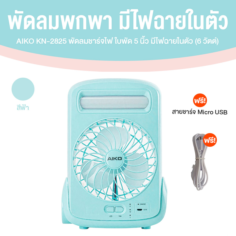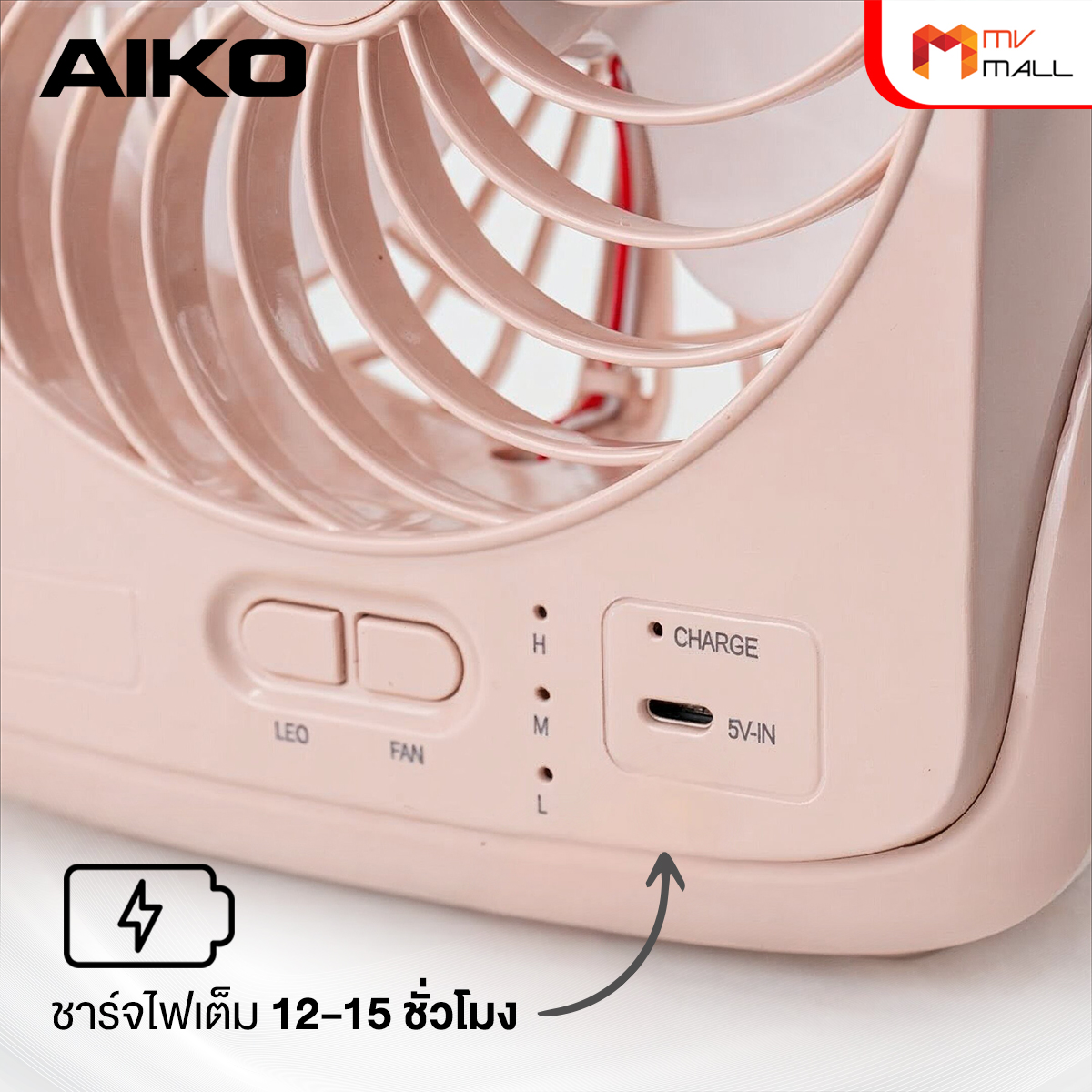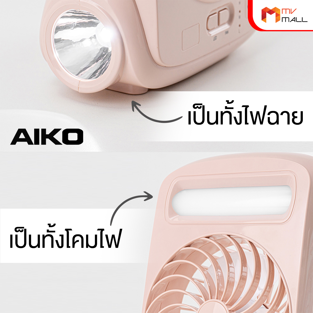 - ได้ AIKO พัดลม มินิ ชาร์จไฟ พร้อมฟังก์ชั่นโคมไฟ และไฟฉาย