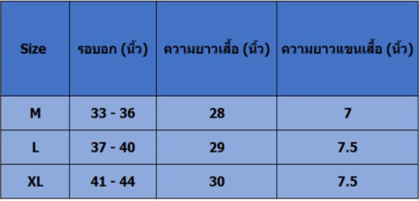 - เนื้อผ้า T/COTTON (Cotton ผสม Polyester) เส้นด้ายที่แข็งแรง ทนทาน ดูแลรักษาง่าย แห้งไว