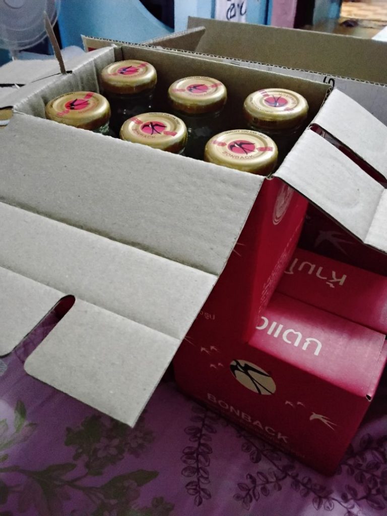 - อัดแน่นไปด้วยเนื้อรังนกแท้แน่นๆ เท่ากันหมดทุกขวดได้มาตรฐาน