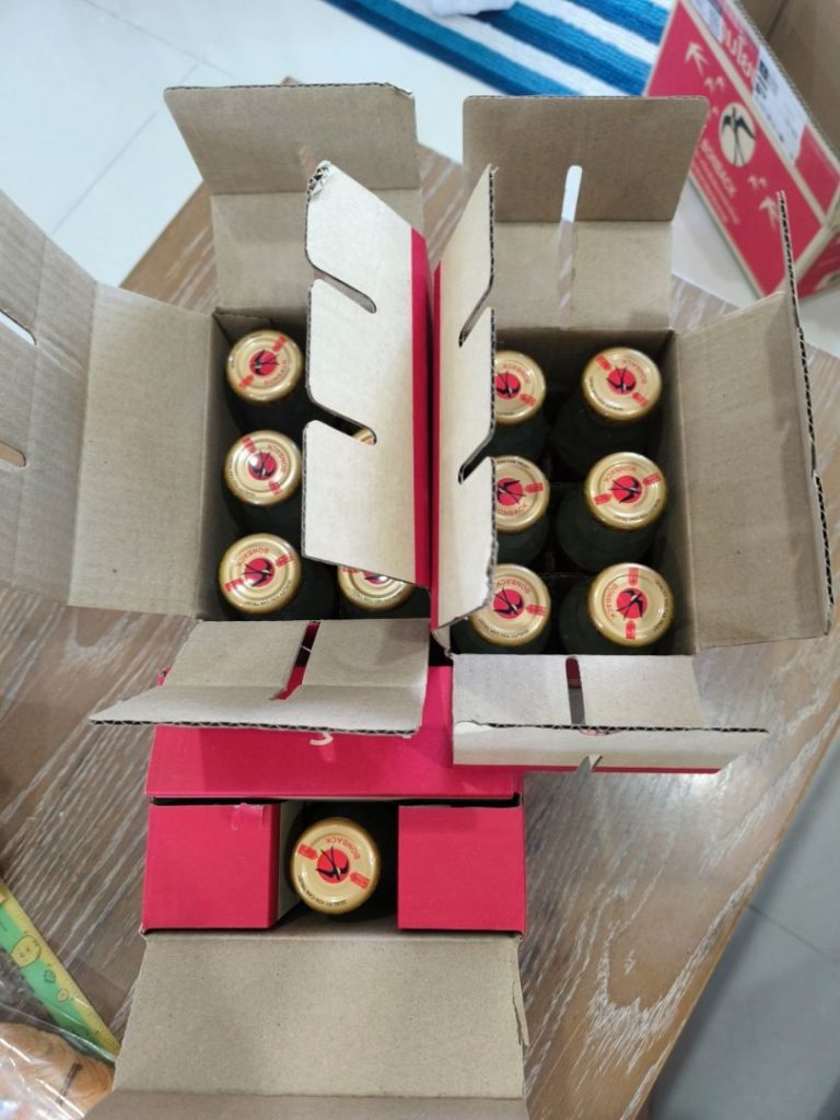 ได้รับสินค้าเป็นที่เรียบร้อยแล้วครับ ส่งถึงไวมากครับ รสหวานจากน้ำตาลกรวดแท้, บรรจุ 18 ขวดในหนึ่งกล่อง,