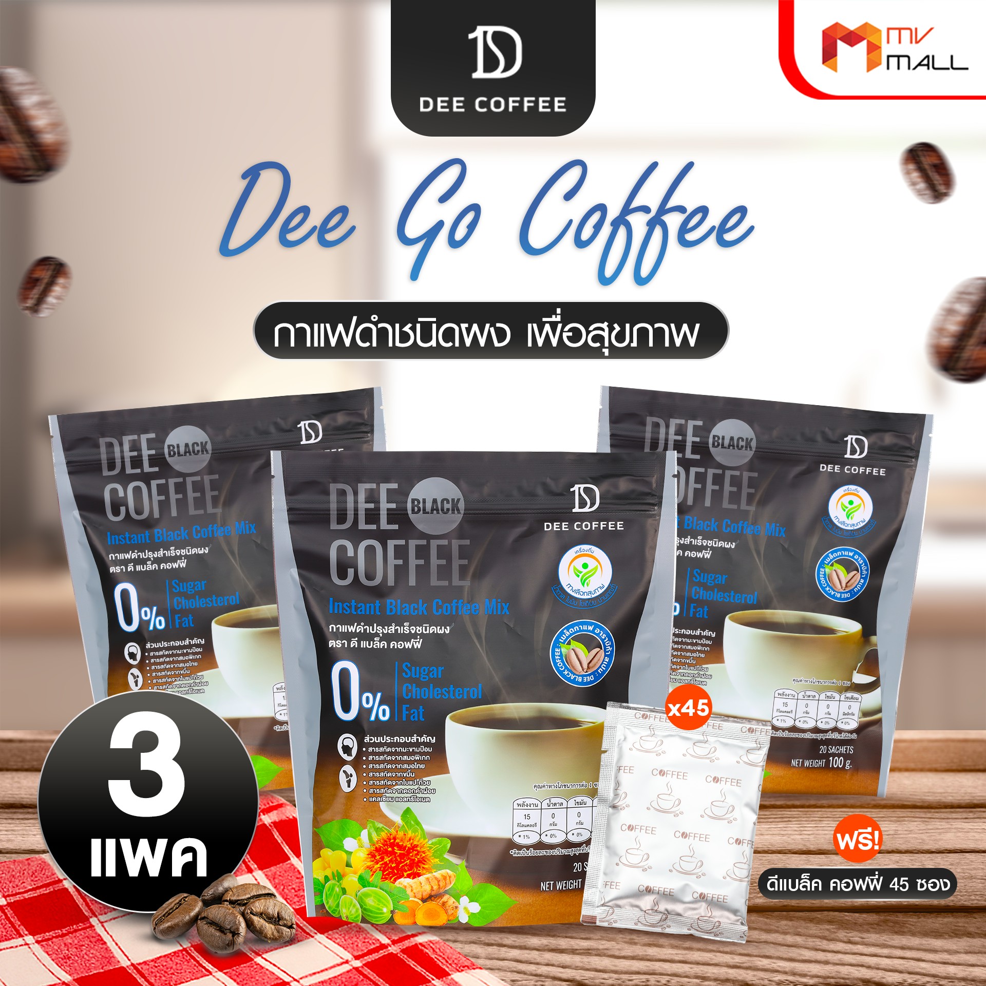Dee Go Black Coffee ดี โก กาแฟดำ กาแฟปรุงสำเร็จ กาแฟอาราบิก้าแท้ ไม่มีน้ำตาล ขนาด 20 ซอง จำนวน 3 ถุง