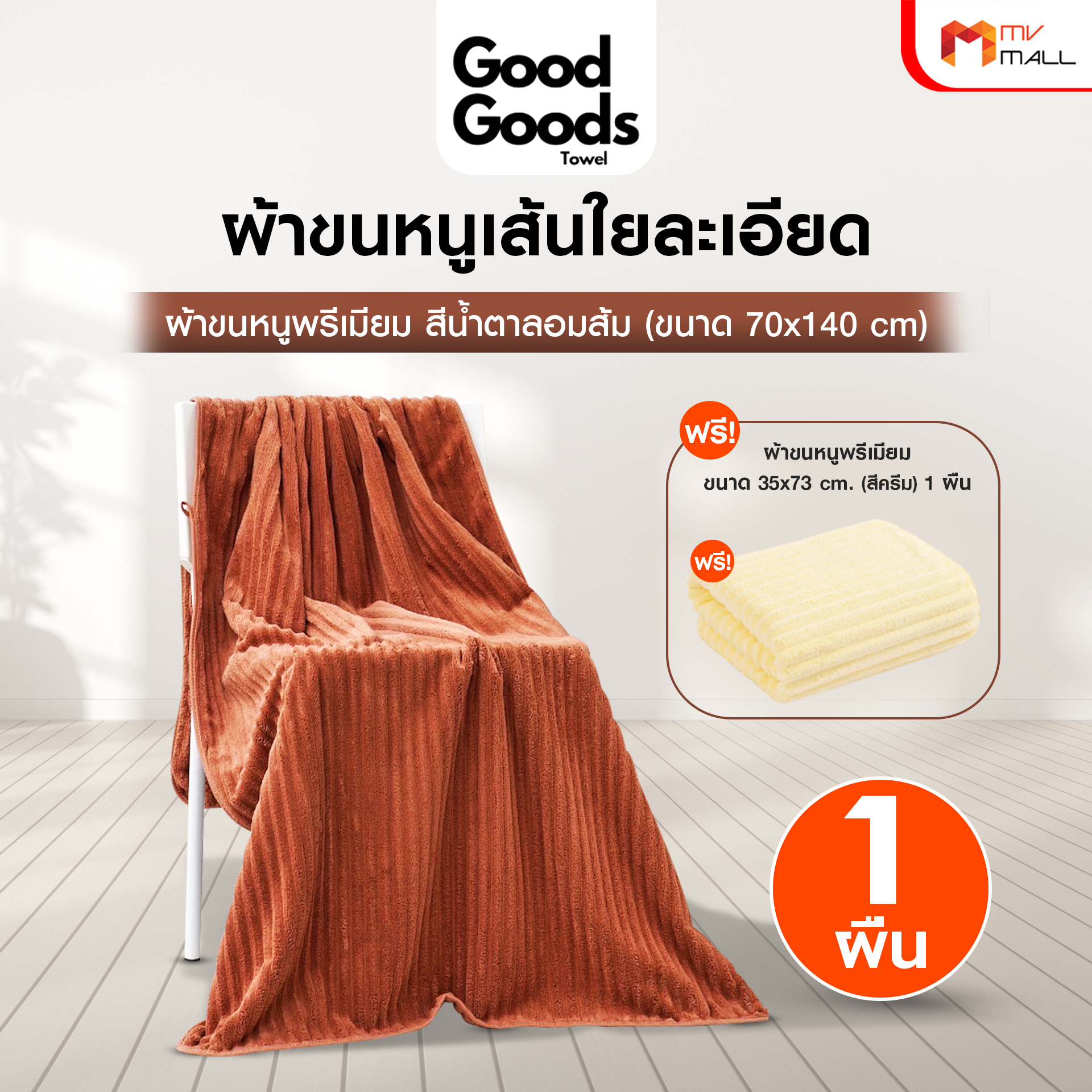 • ผ้าเช็ดตัวผืนใหญ่ ขนาด 70×140 เซนติเมตร จำนวน 1 ผืน