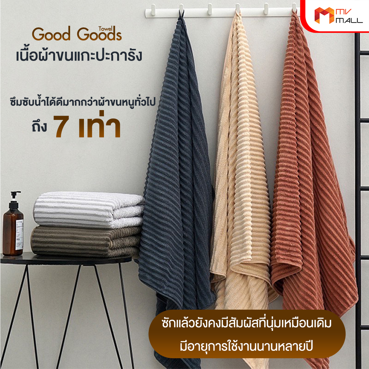 • ซึมซับน้ำได้ดีมากกว่าผ้าขนหนูทั่วไปถึง 7 เท่า