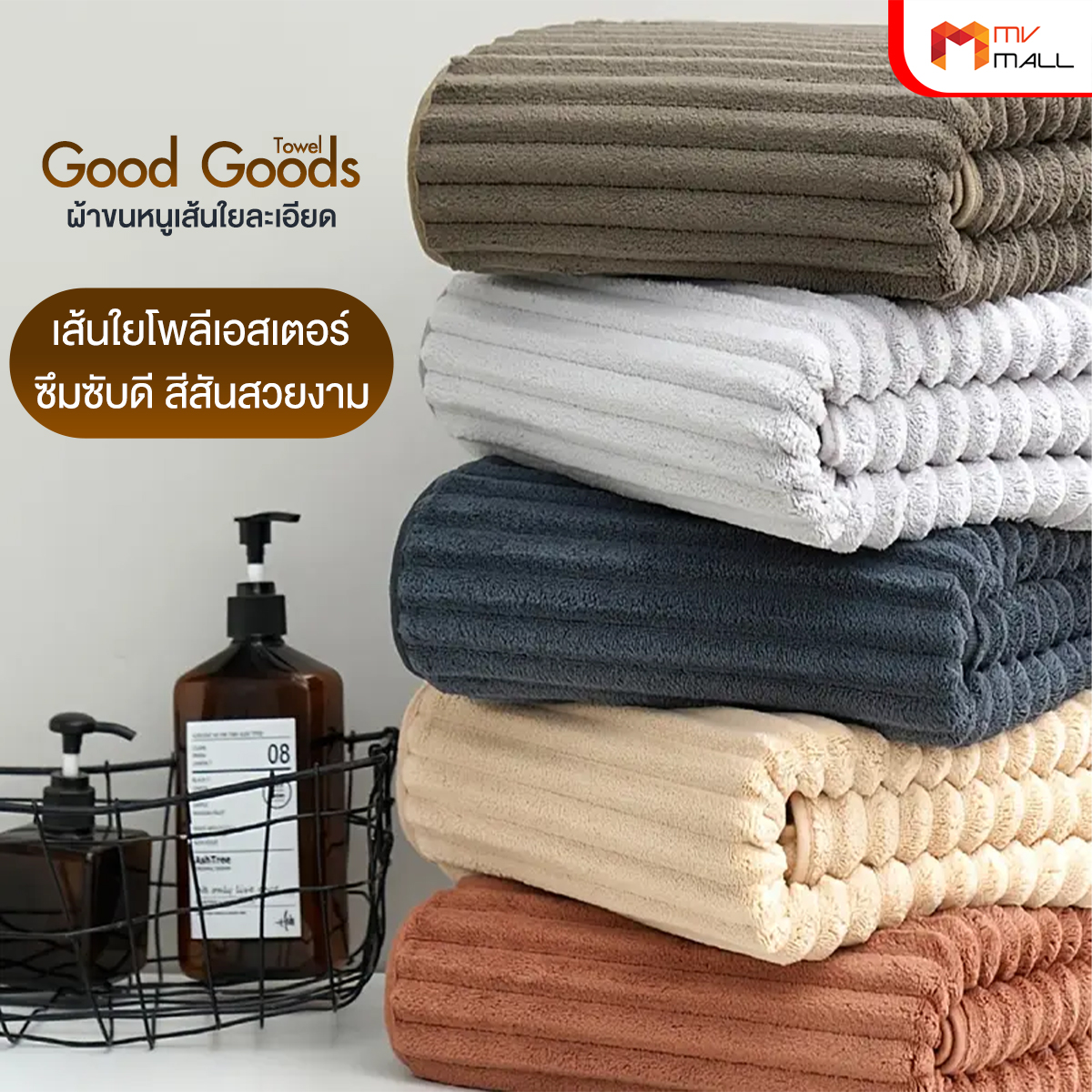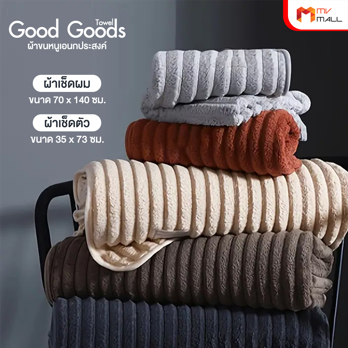 Good Goods ผ้าเช็ดตัวขนแกะปะการัง 1 ผืน + Good Goods ผ้าเช็ดผม 1 ผืน