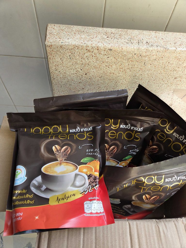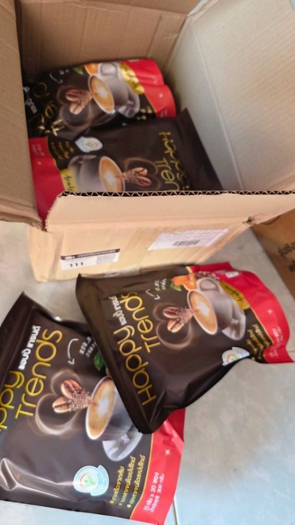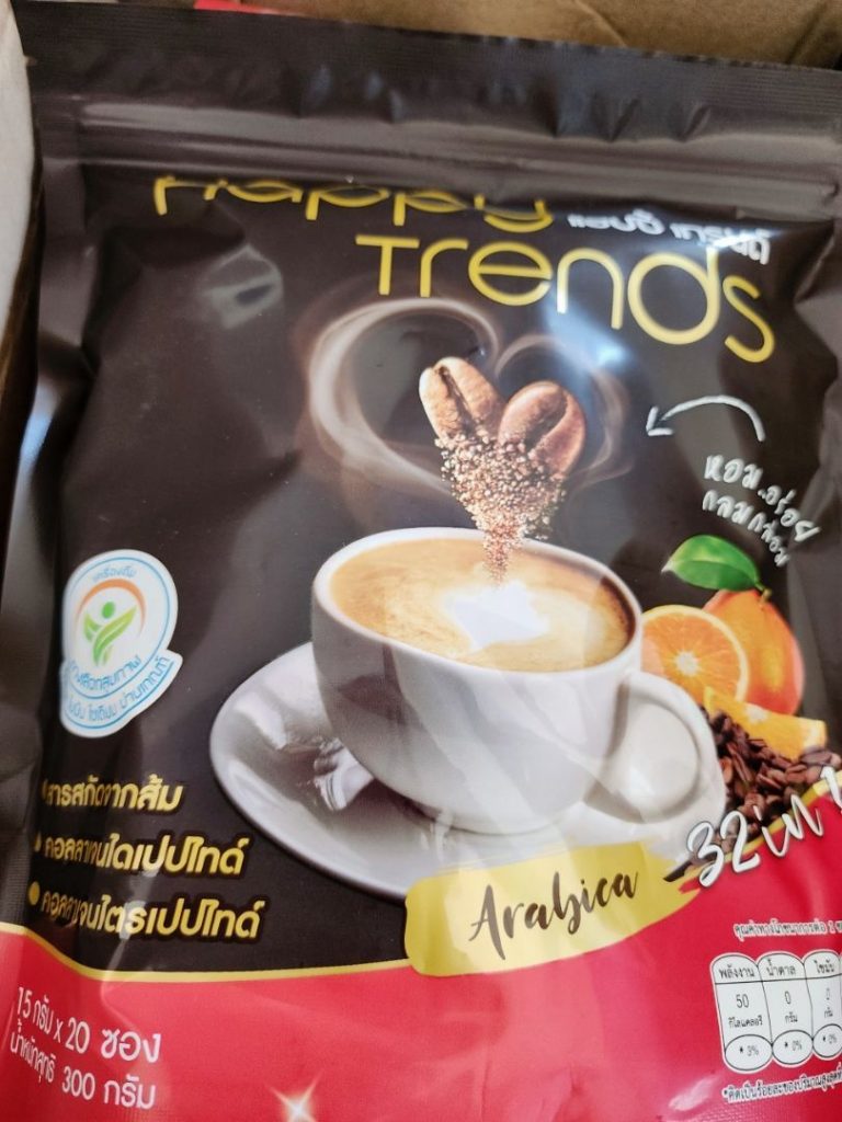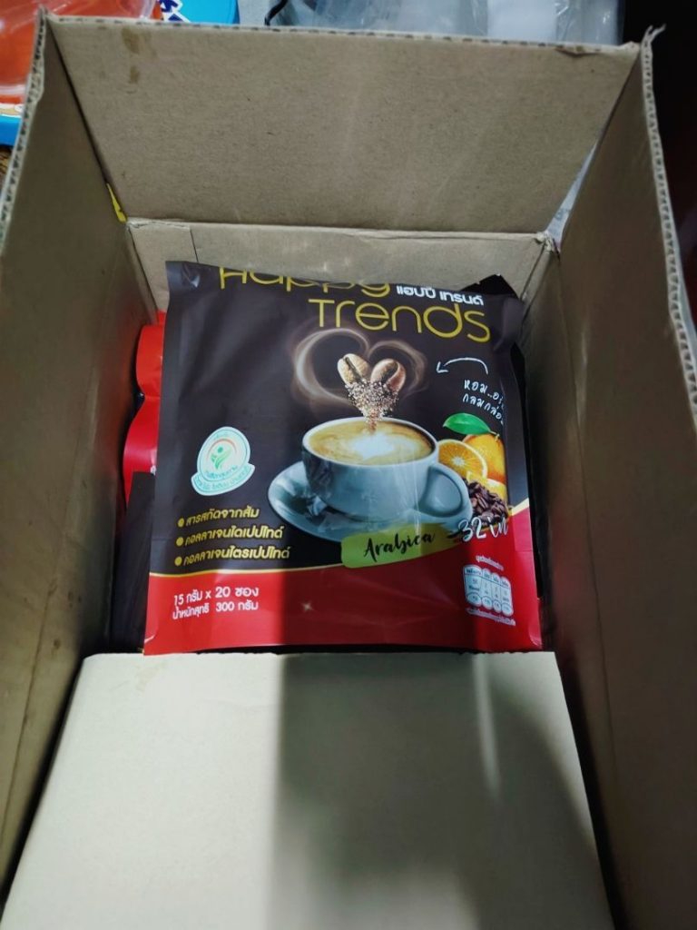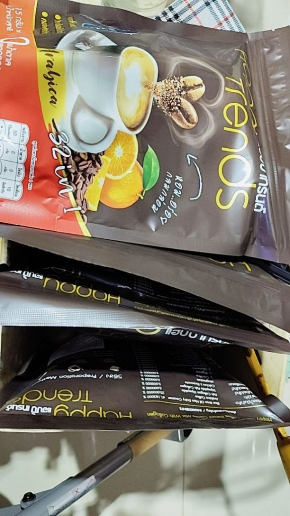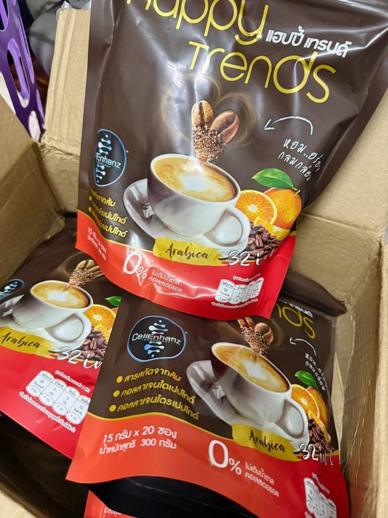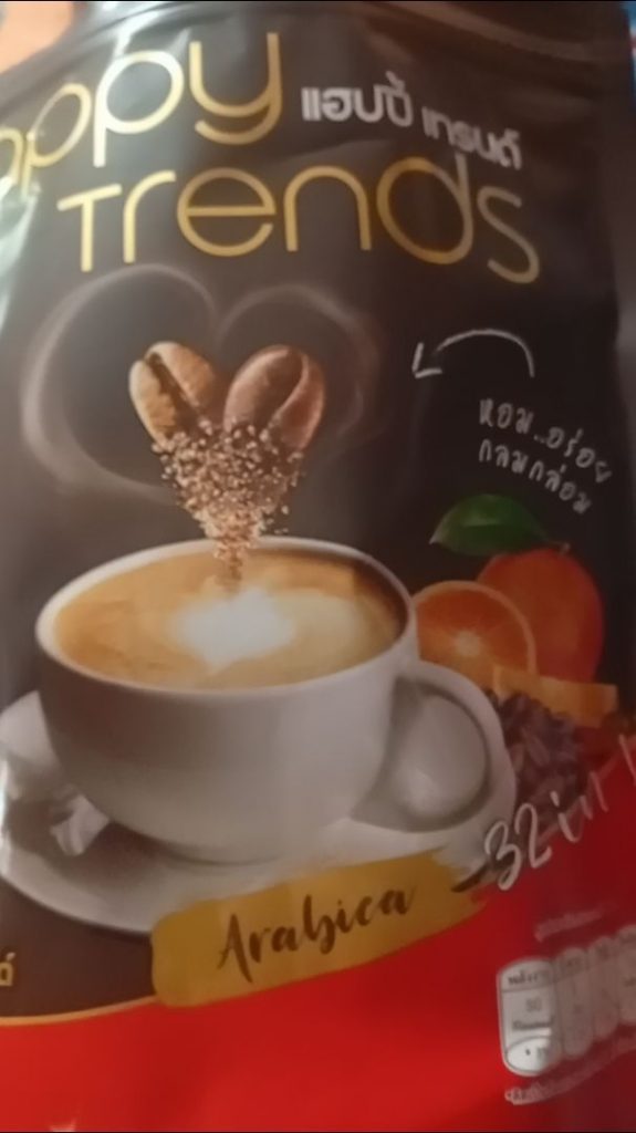 กาแฟแฮ็ปปี้เทรนด์กลิ่นหอมรสชาติอร่อยมากไม่ต้องหวานมากรสนี้แหละที่อร่อยกาแฟเข้มข้นดีดื่มวันละสองซองเช้าบ่ายมีคุณภาพคับแก้ว