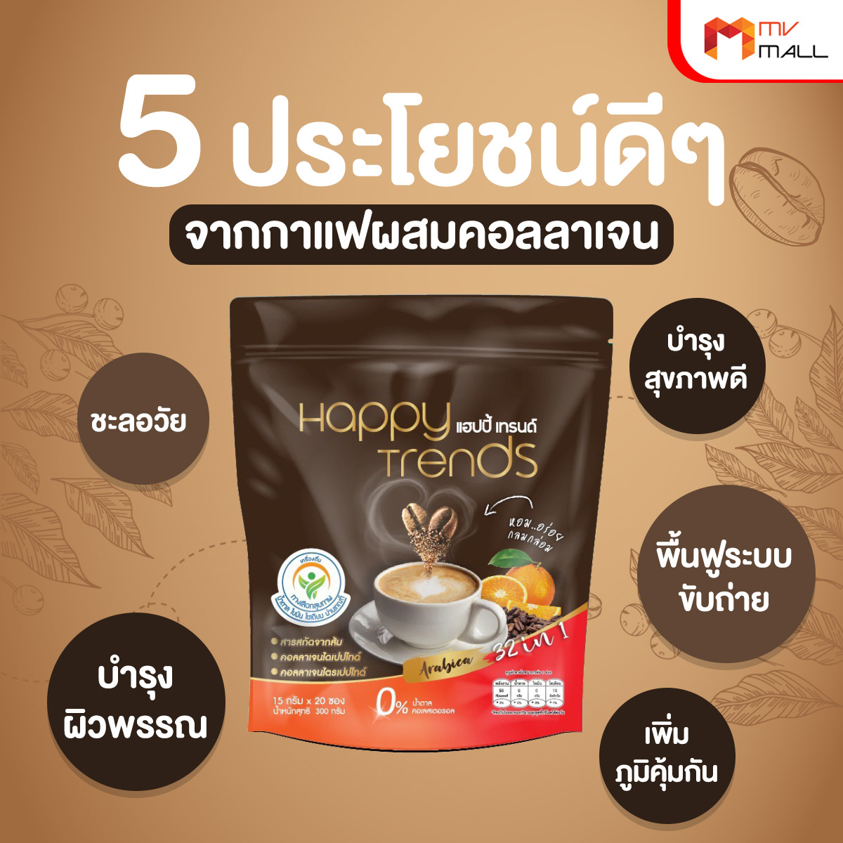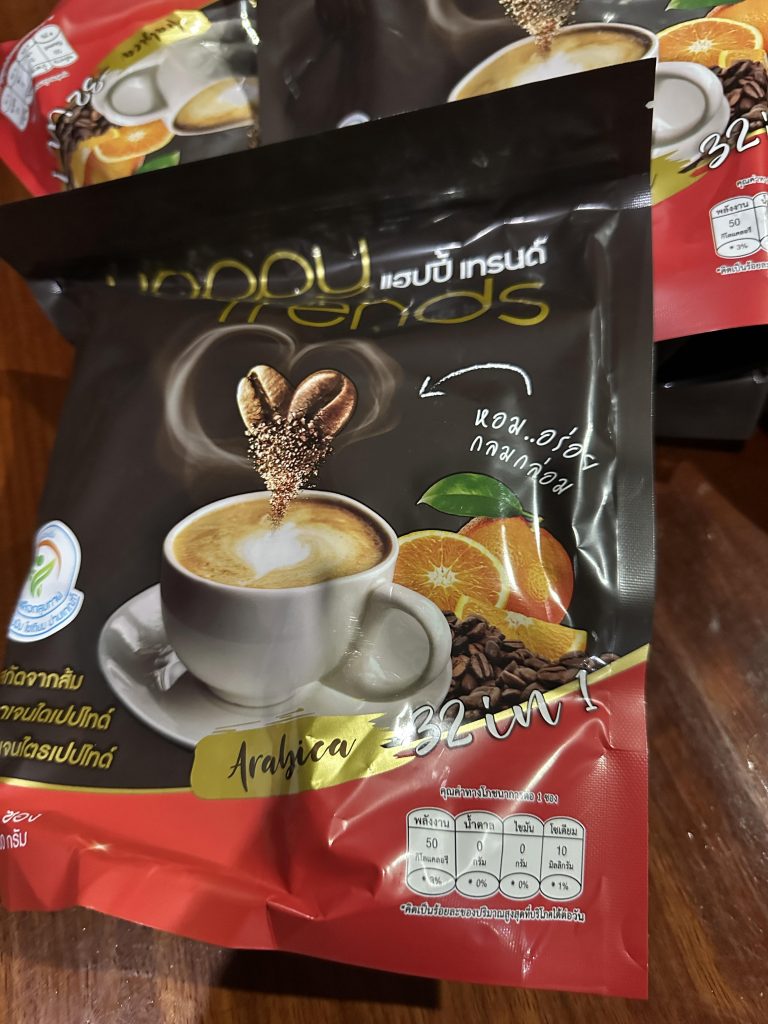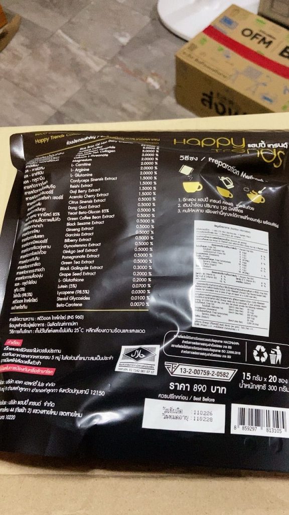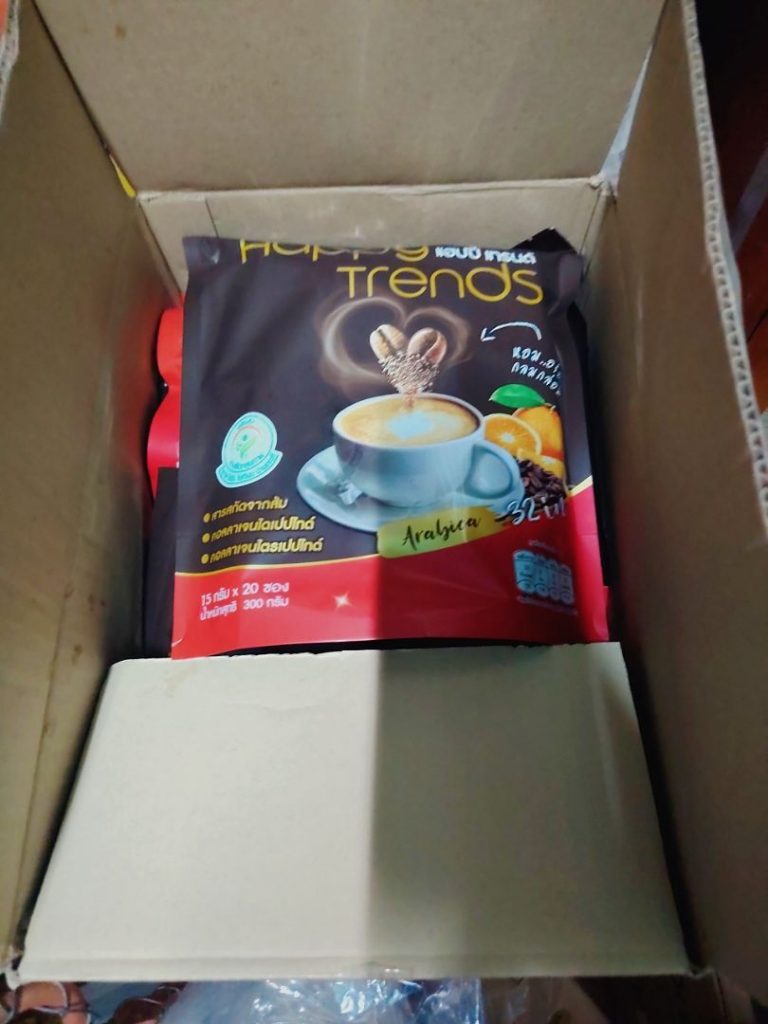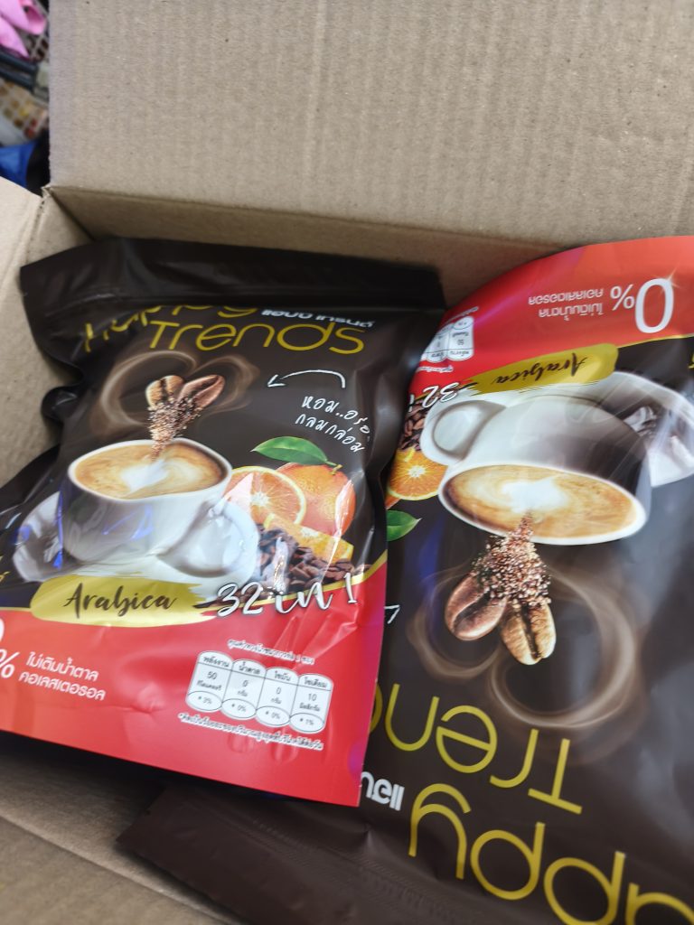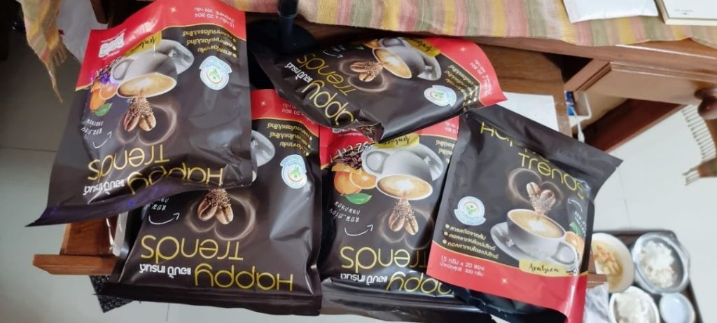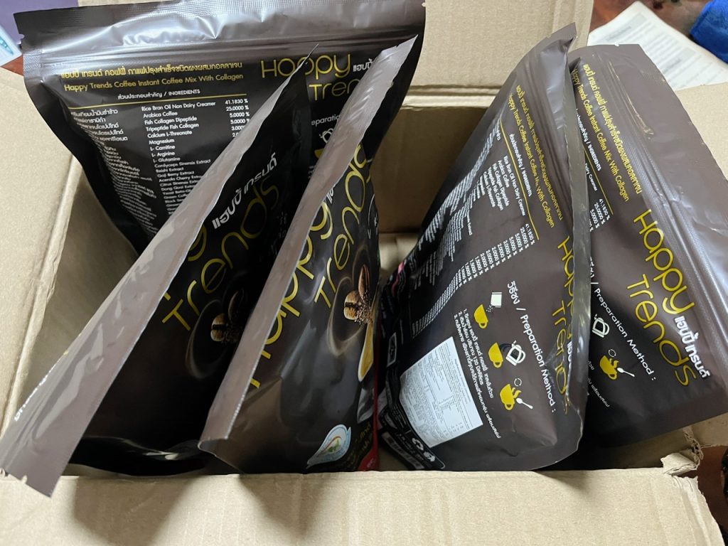 กาแฟแฮ็ปปี้เทรนด์กลิ่นหอมรสชาติอร่อยมากไม่ต้องหวานมากรสนี้แหละที่อร่อยกาแฟเข้มข้นดีดื่มวันละสองซองเช้าบ่ายมีคุณภาพคับแก้ว
