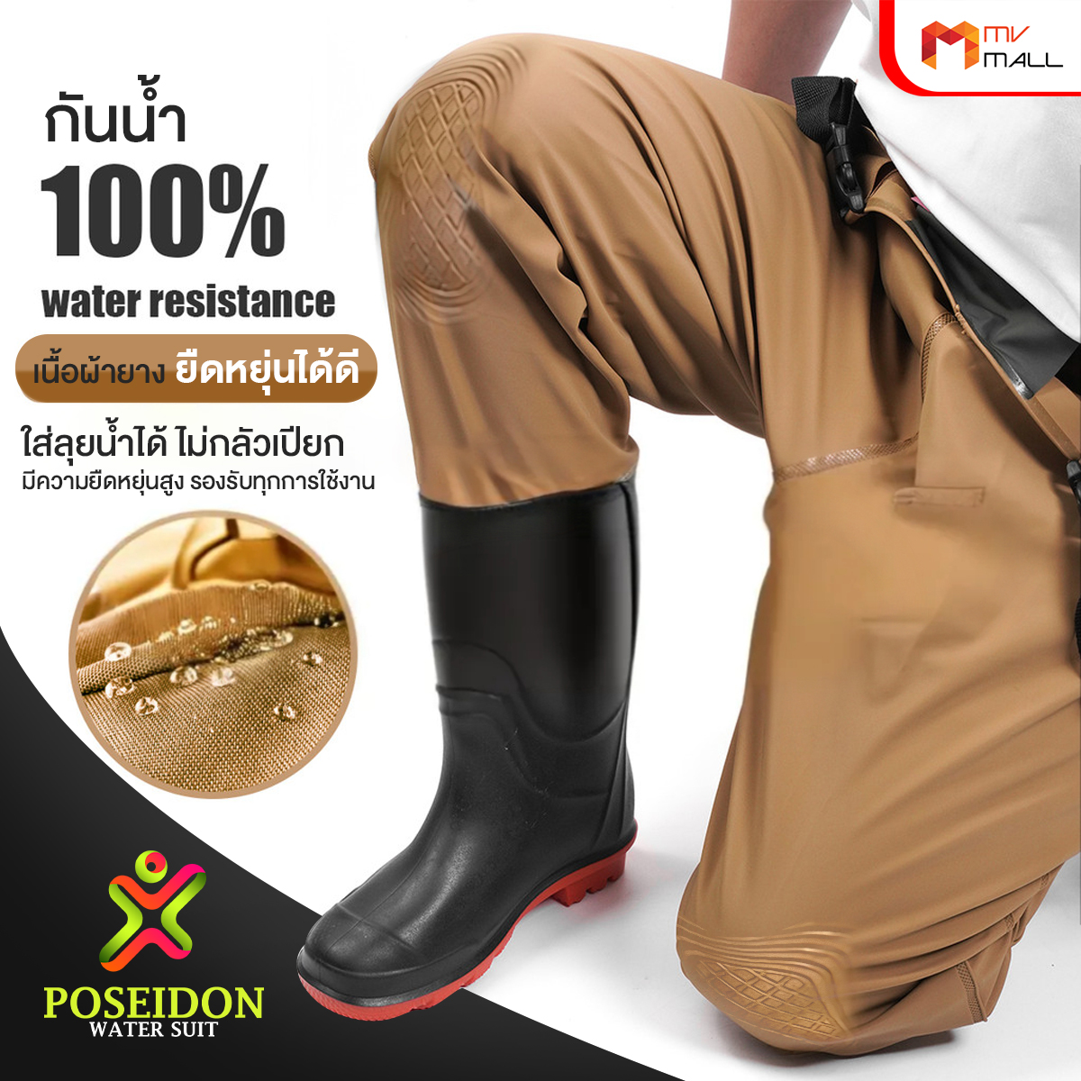 • ขอบขากางเกงและรองเท้า ที่เชื่อมต่อกันอย่างดี น้ำไม่สามารถรั่วซึมได้