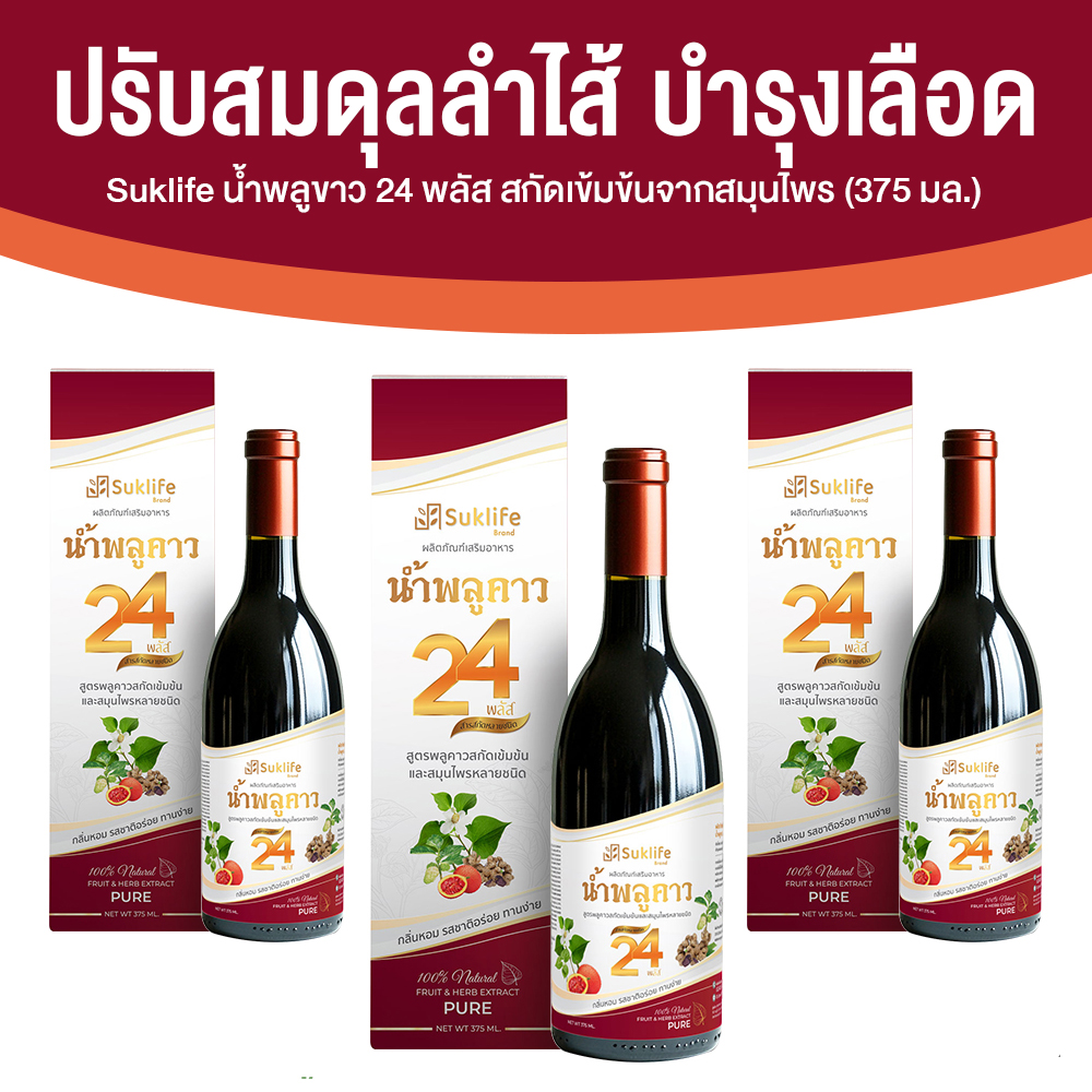 Suklife น้ำสมุนไพรพลูคาว 24 พลัส เสริมภูมิคุ้มกัน ปรับสมดุลร่างกาย ขนาด 357 ml. จำนวน 3 ขวด จาก 23 รีวิว