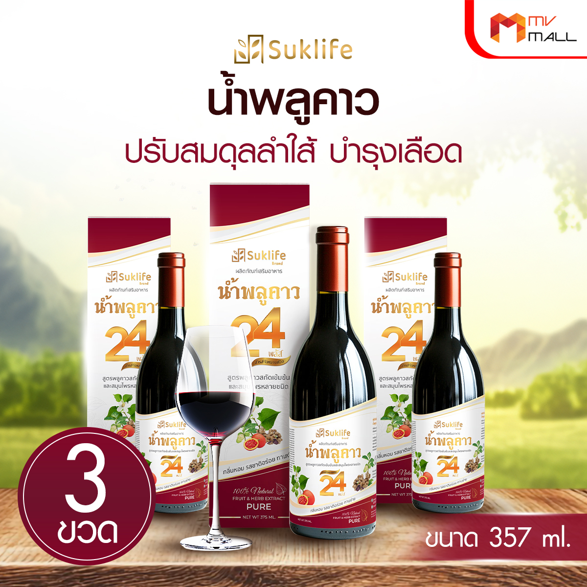 Suklife น้ำสมุนไพรพลูคาว 24 พลัส เสริมภูมิคุ้มกัน ปรับสมดุลร่างกาย ขนาด 357 ml. จำนวน 3 ขวด