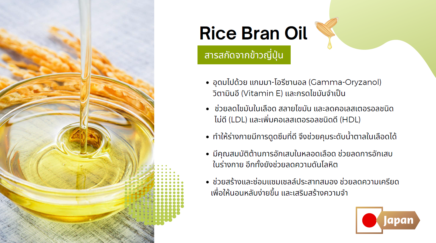 - REFINED RICE BRAN OIL / น้ำมันรำข้าว = 374 มก.