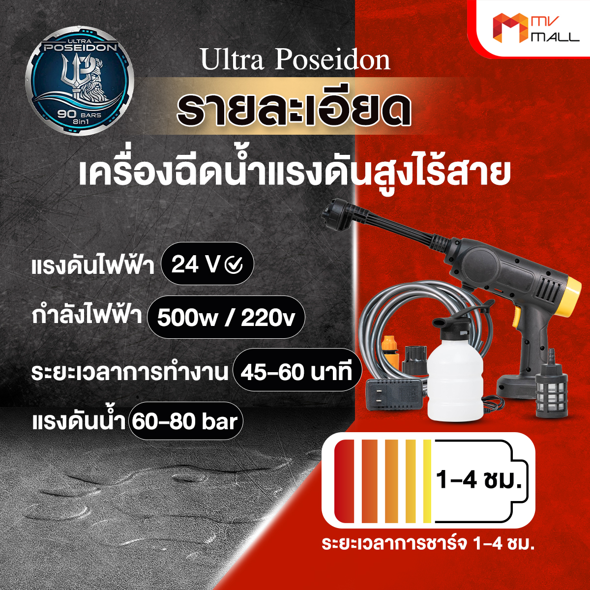 - เครื่องฉีดล้างรถยนต์ แรงดันสูง ซึ่งระยะเวลาการใช้งานแบตเตอรี่ที่ยาวนาน